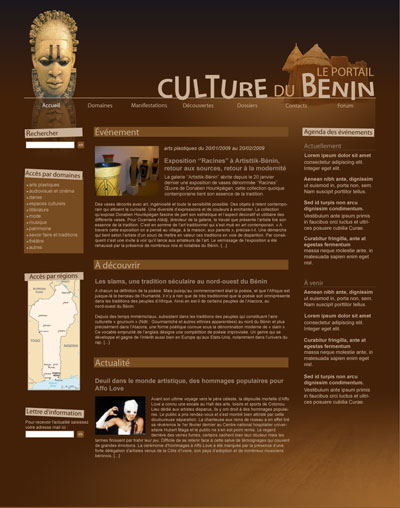 Projet de maquette web pour le "portail culturel du Bénin", pour le compte de l'agence C2Net