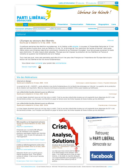 Conception et intégration du site du Parti Libéral Démocrate pour le compte de l'agence C2Net.