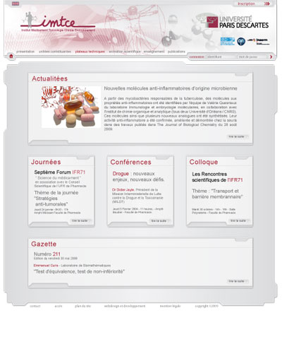 Webdesign et intégration du site IMTCE (Université Paris V).